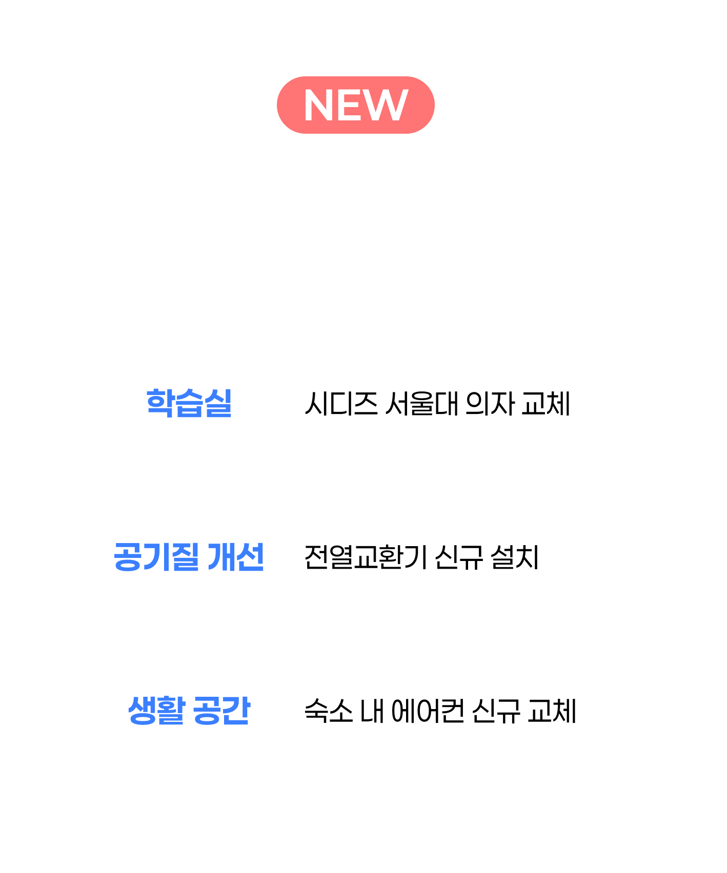 | 학습실과 숙소는 모두 랜덤 배정되며, 입소 후에 변경 요청 시 변경이 가능합니다. |